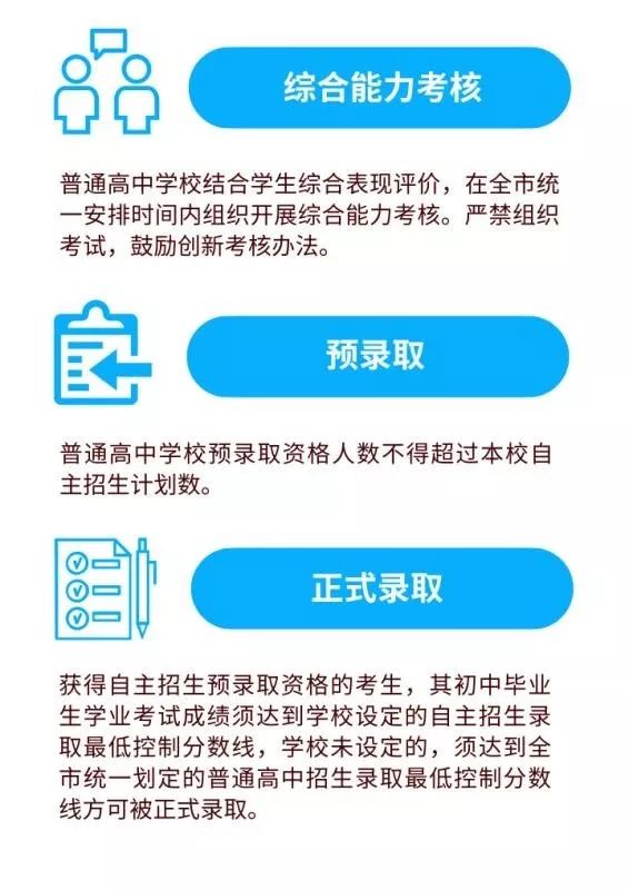 2019年,22所试行自主招生的学校将按照规定的程序开展工作,做到七个统一,即统一公布自主招生简章、统一平台报名、统一公示通过资格审核名单、统一志愿填报、统一时间组织综合能力考核、统一公示预录取名单、统一录取。