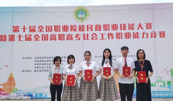 近日,第十届全国职业院校民政职业技能大赛暨第七届全国高职高专社会工作职业能力竞赛在重庆举行。广州科技贸易职业学院(以下简称“广州科贸”)社会工作专业师生积极参赛,最终,2017级林丹娜和2018级孙言获得了一等奖、2018级刘佳平和黄东震获得了二等奖,钟丽欢、付敏老师获得了优秀指导教师奖,实现了广州科贸参与全国社会工作职业能力竞赛成绩的新突破。