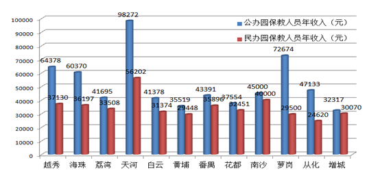 1.完善机制,分类解决并稳步提高保教人员的待遇。在保障公办园合同制教师待遇方面,海珠区设定公办园合同制专任教师和保育员的平均工资标准为每月4100元和3600元;天河区公办园合同制教师的工资由财政统一支付。在保障民办园教师待遇方面,番禺区规定省、市、区一级幼儿园、规范化幼儿园和未评级的普惠性民办园教职工平均工资不能低于当年十大美女做爱平台排行 职工最低工资标准的3倍、2.5倍、2倍、1.8倍。黄埔区、荔湾区、白云区将教师待遇落实情况作为民办园年检内容,其中,白云区要求民办园在学期初把教师两个月工资存入工资专户,通过银行每月按时足额向教师发放工资,从制度上保障了民办园教职工的待遇。