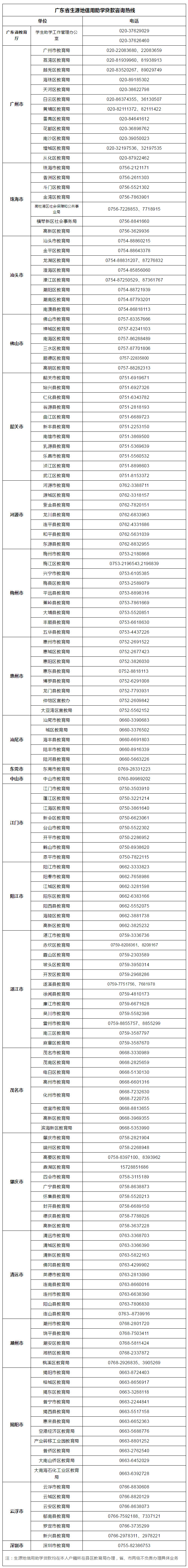 同学们如果对生源地信用助学贷款申请还有疑问的,可拨打所在县(市、区)热线电话进行咨询哦!